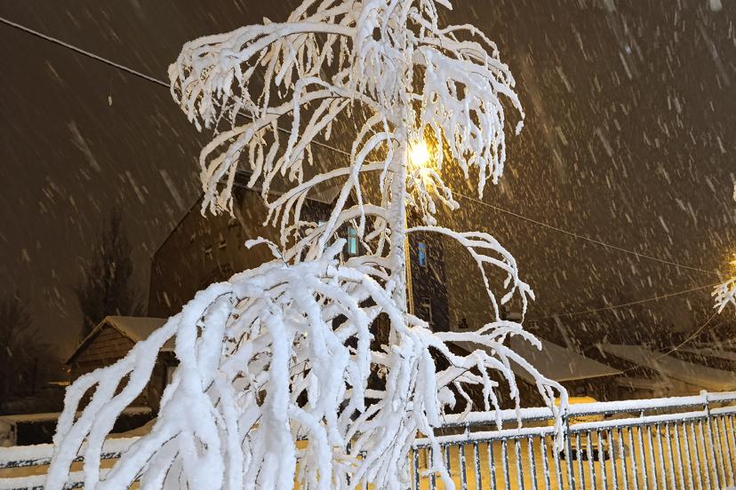 Ağaç dallarının üzerinde biriken karlar seyirlik görüntüler oluşturdu.