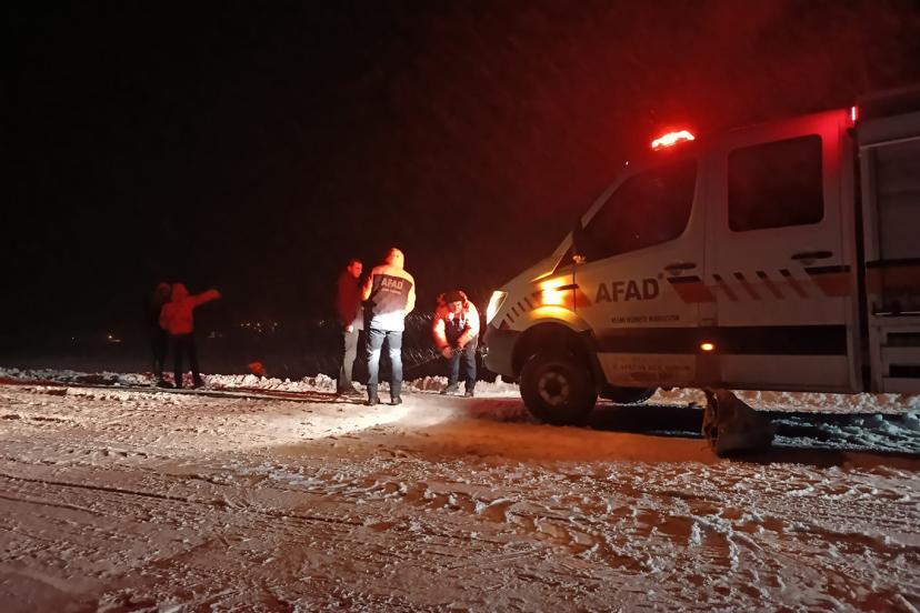 Aile mahsur kalırken, ihbar üzerine bölgeye jandarma ve AFAD ekipleri gitti. Ekiplerin çalışmasıyla şarampole kayan araç iş makinesine bağlanan halatla çekilerek kurtarıldı. Aile, araçla yollarına devam etti.
