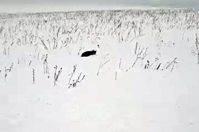 Görüntülerde, vaşağın oldukça bitkin olduğu ve çevredeki hareketliliğe rağmen kaçacak gücü bulamadığı dikkat çekti. Bir süre koştuktan sonra nefeslenmek için duran vaşak, içgüdüsel olarak karların arasına yatarak kendini gizlemeye çalıştı.