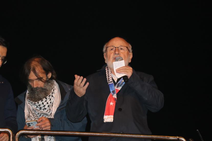 "Dünyanın dikkati petrole bulanmışken, sözde ateşkes rejimi kalbura dönmüşken, katiller kan dökmeyi sürdürüyor. Ama biliyoruz ki gecenin en karanlık anı, sabaha en yakın olandır! Biliyoruz ki zulümle abad olunmaz! Hani demişti ya HAMAS'ın kurucusu Şeyh Ahmet Yasin 'en fazla 80 yılı var bu zalim işgal rejiminin'... Biliyoruz bu zulüm bitecek, zalimler düşecek, mazlumlar gülecek, Aksa yeniden özgür olacak! 7 Ekim Aksa Tufanı, adını Mescidi Aksa'dan alan, gücünü Aksa'yla toplayan, hayatını Aksa'ya adayan kutlu bir direniş hamlesiydi. On binlerce şehit, Mescid-i Aksa'nın hürriyeti için canını feda etti. Yüzbinlerce Filistinli, Aksa için, eşini, evladını, anasını, babasını, evini barkını feda etti. Şimdi bize düşen, şehitlerin emaneti Mescid-i Aksa'ya sahip çıkmaktır. Dikkatimizi dağıtmalarına fırsat vermeden, Mescid-i Aksa'ya odaklanmalıyız. Lübnan'da, İran'da, Suriye'de, Yemen'de ve diğer islam diyarlarında masum çocuklar bombalanırken, acımız elbette büyüktür. Elbette yiten canlara, akan kanlara duyarsız kalmayacağız. Ancak bileceğiz ki Gazze'nin 70 bin şehidi, Mescid-i Aksa için can verdi. Siyonistler, Mescid-i Aksa'yı yalnız bırakmak için soykırım yapıyor. Bütün kavga Kudüs ve Mescid-i Aksa üzerinden yürüyor."