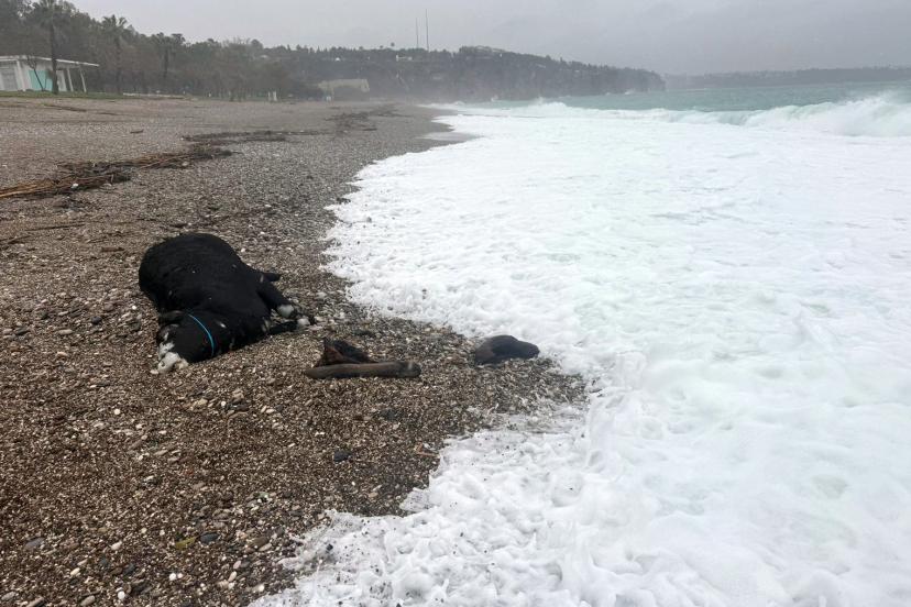 Antalya'nın dünyaca ünlü Konyaaltı Sahili'nde, sel ve fırtına ile beraber denize sürüklendiği değerlendirilen ölü boğa bulundu. Büyükşehir Belediyesi'ne bağlı kıyı temizliği yapan ekiplerin bulduğu dana, vinç ile bulunduğu yerden alındı. Antalya Kundu bölgesinde ise araziler su altında kaldı.