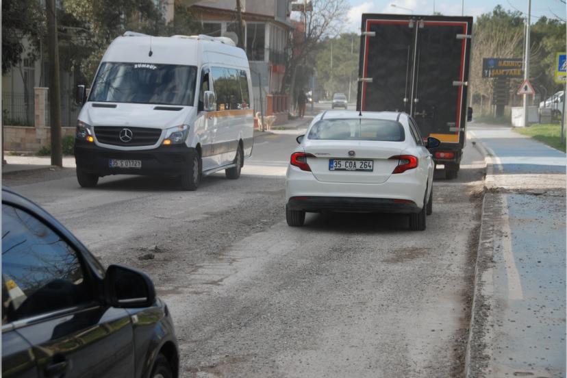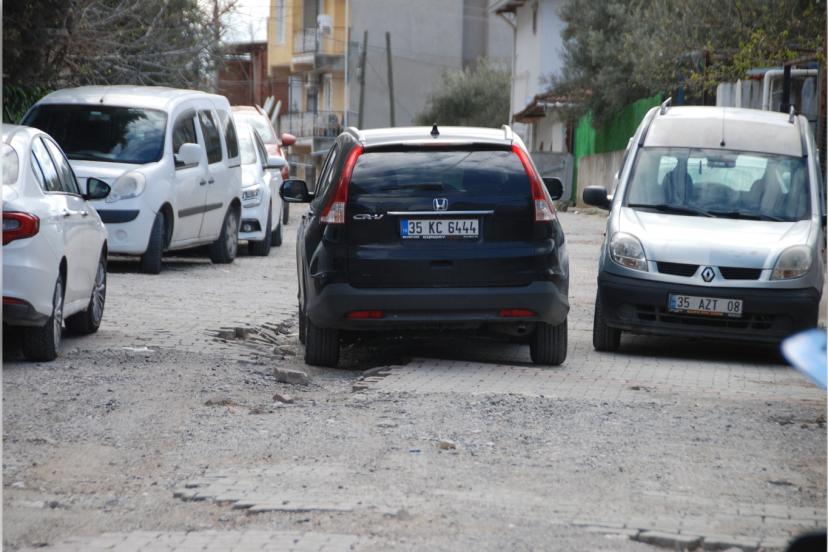 “Burası 5-6 aydır böyle. İZSU, tatlı su altyapısını değiştirme vaadiyle kazdı. Tabii ki zorluk yaşıyoruz. Toz topraktan geçemiyoruz. Dükkanlarımızın kapısını açamıyoruz, açsak da gıda sattığımız için ürünlerimiz toz oluyor. Müşteri azalması yaşıyoruz. Müşteriler de tozdan dolayı haklı olarak dükkana gelmiyor. Mağdur olduk. Ayrıca bize bir açıklama da yapılmıyor. İZSU’yu aradığımız zaman sadece tankerlerle, eski köy sistemi gibi sulama yapılıyor, geçiştiriliyor. Çok büyük sıkıntılar yaşıyoruz. Zaten yolların hepsi bozuk, bu gibi sıkıntılarımız var.”