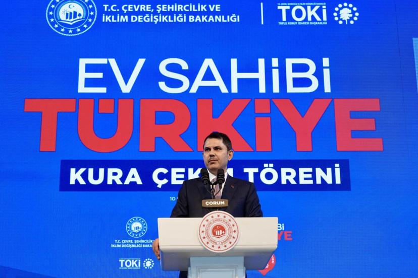 Çorum’daki Ev Sahibi Türkiye Kura Çekim Töreni’nde konuşan Çevre, Şehircilik ve İklim Değişikliği Bakanı Murat Kurum, “İstanbul'daki kuramızı çekip sonrasında hızlıca temelleri atacağız. 500 bin konutumuzu da hızlı bir şekilde yapacağız. 2 yıl içinde de anahtarları vermeyi hedefliyoruz." dedi.