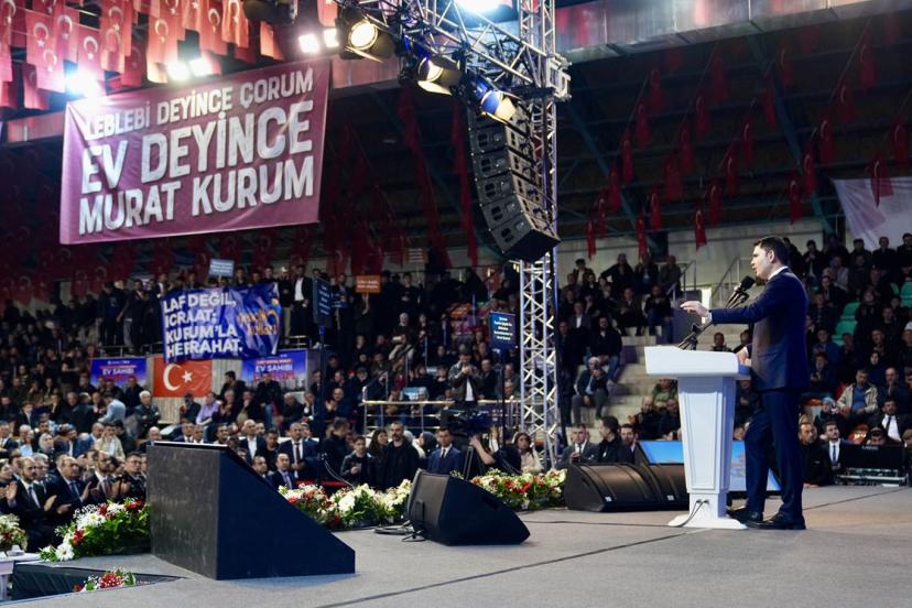 Konuşmasının başında Polis Teşkilatı’nın 181’inci yılını kutlayan Bakan Kurum, tüm şehitleri rahmetle andı. Bakanlığın Çorum’daki yatırımlarının 61 milyar TL’ye ulaştığını söyleyen Bakan Kurum, 9 milyar TL’lik yatırımın ise devam ettiğini söyledi. Bakan Kurum, "Tek bir an bile durmak yok. İlk Evim Arsa Projemiz kapsamında, önümüzdeki 2 ay içerisinde tapu devir işlemlerini tamamlayacağız. Yine, İlk İş Yerim Projemiz kapsamında Üyük ve Şekerbey Mahallelerimizde, 225 iş yerimizin ihalesini 22 Mayıs’ta yapacağız." dedi.