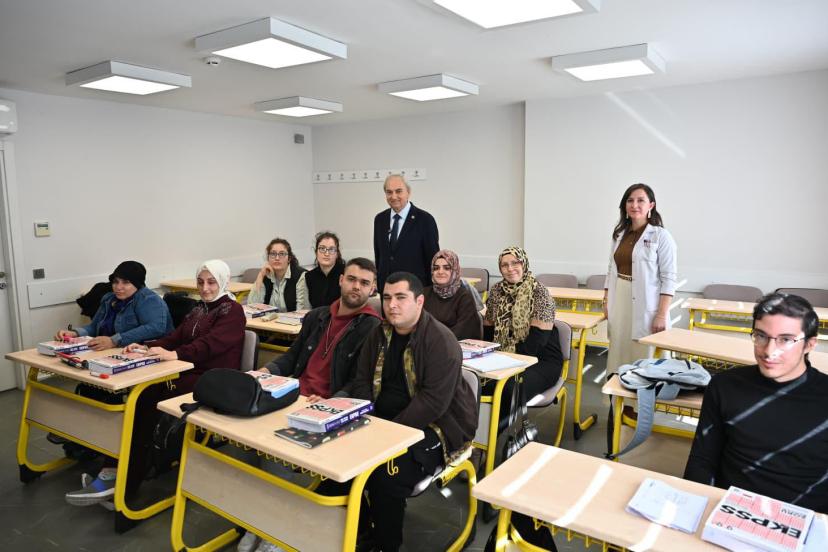 Kepez Belediyesi, Yasin Naci Ağaroğlu Eğitim Merkezi’nde başlattığı EKPSS kursu ile engelli bireylere sınav hazırlığında eğitimciler eşliğinde destek sağlıyor. Haftanın 5 günü gerçekleşen kurslar, çarşamba ve pazar günleri hariç, toplamda 27 saat ders imkanı sunuyor. Kursta Türkçe, matematik, tarih, coğrafya ve vatandaşlık dersleri veriliyor. Engelli bireylerin yoğun ilgi gösterdiği EKPSS kursunu ziyaret eden Başkan Kocagöz, gençlerin sınava hazırlık süreçlerini ve hedeflerini dinledi. Başkan Kocagöz, başarı dileklerini ileterek, kursiyerlere EKPSS kitabı hediye etti.