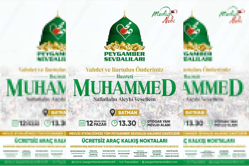 Peygamber Sevdalıları Vakfı Batman Koordinatörlüğü tarafından "Vahdet ve Kurtuluş Önderimiz Hazreti Muhammed (sallallahu aleyhi vesellem)" temasıyla Mevlid-i Nebi etkinliği düzenlenecek.