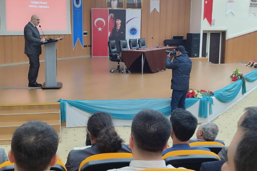 Seminerde, taşınmaz ticareti alanında faaliyet gösterenler ile sektöre girmek isteyenlere yönelik bilgilendirme yapıldı.