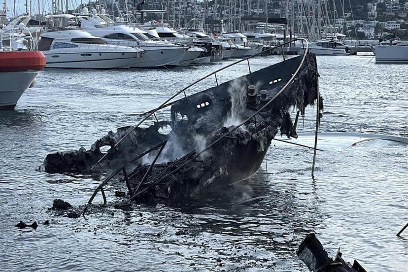MUĞLA'nın Bodrum ilçesindeki marinada çıkan, 7 motoryatın battığı ve 1 motoryatın da kısmi hasar aldığı yangının ardından böl...