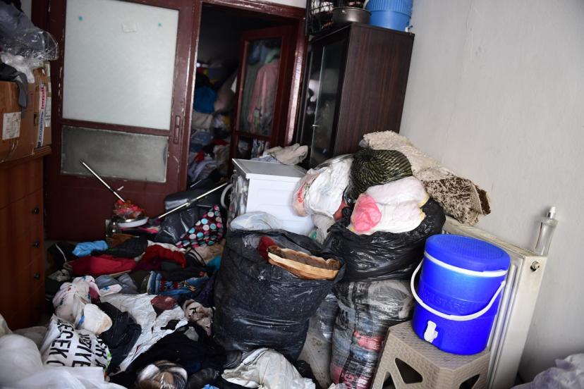 Mahkeme kararının ardından adrese giren ekipler, kapsamlı bir temizlik çalışması yürüttü. Ev içerisinde uzun süredir biriktirilen, kötü kokuya neden olan kıyafet ve çeşitli atıklar dikkatli şekilde ayrıştırılarak dışarı çıkarıldı.