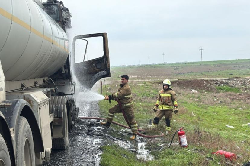 Şırnak’ın Cizre ilçesi Organize Sanayi Bölgesi (OSB) mevkiinde seyir halindeki tanker alev aldı. Sürücünün son anda aracı sağa çekerek kurtulduğu olayda can kaybı yaşanmadı.
