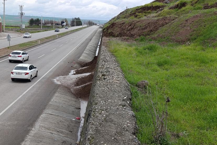 Diyarbakır’da son günlerde etkili olan yoğun yağışların ardından Diyarbakır-Mardin yolunda toprak kayması meydana geldi.