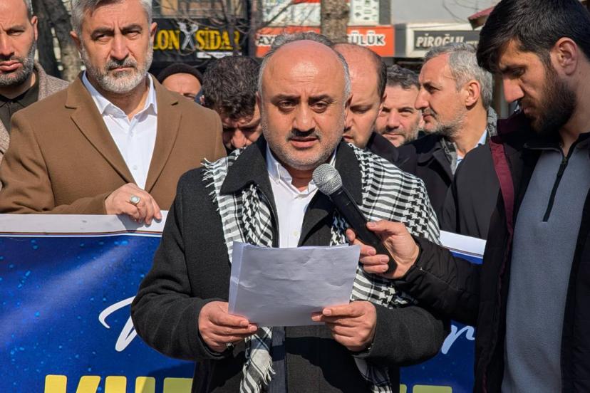Tilavetin ardından platform adına söz alan Yücel Oktay, Kudüs’ün yalnızca bir toprak parçası değil, İslam ümmetinin ortak mirası ve ilk kıblesi olduğunu vurguladı.