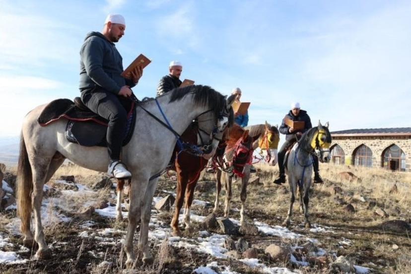 Pir Ali Baba Türbesi’ndeki törende, tekbirler eşliğinde atlar üzerinde Kur’an-ı Kerim okuyan hafızlar, Pir Ali Baba’nın yaşadığı dönemde şehri dolaşarak hatim okuduğu rivayetini temsili olarak canlandırdı. Hafızların hilal düzeni oluşturarak ellerindeki cüzlerle okudukları ayetler, geleneğin bu yılki başlangıcını simgeledi.