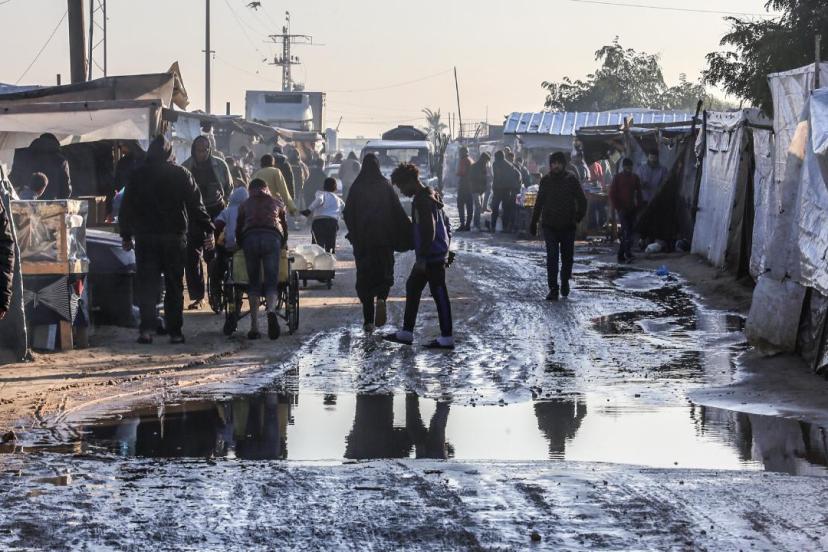 İsrail saldırıları nedeniyle altyapının tamamen çöktüğü Gazze'de birçok çadırı su bastı, toprak yollarda çamur birikintileri oluştu. Filistinliler, çadırlarına dolan suları kova ve kaplarla temizlemeye çalıştı.