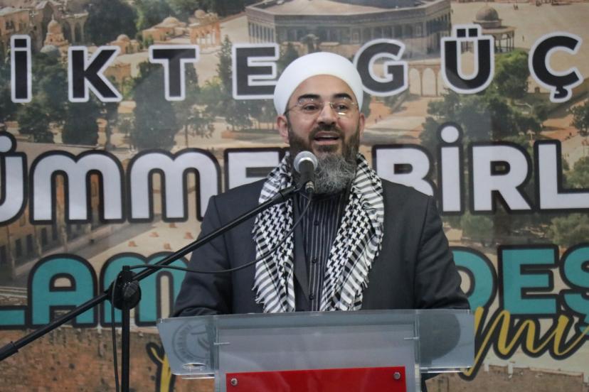 Programda bir konuşma yapan HAMAS yetkililerinden Usame Hamdan, "İnsan, kardeşleriyle her yerde, özellikle de bu aziz ülkede buluştuğunda mutlu oluyor. Mutlu olmamızın sebebi, Allah'ın bizi kardeş kılmasıdır. Allah'ın bizi kavimler ve kabileler hâlinde yaratmasından bir hikmet var. Bu hikmetin amacı, birbirimizi tanımak ve Allah'ın yeryüzündeki halifesi olma görevini yerine getirerek ilerlemektir. Nitekim Allah'u Teâlâ meleklere, 'Ben yeryüzünde bir halife yaratacağım' buyurmuştur. Ancak Allah, aramıza bundan daha büyük ve daha güçlü bir bağ kurmuştur. Bu da Allah ve din kardeşliği bağıdır. Bu bağ sayesinde Resulullah (Sallalahu Aleyhi Vesellem), muhacirlerle ensar arasında kardeşliği tesis etmiştir. Bu sebeple Resulullah, Medine'ye hicret ettikten sonra ilk olarak mescit inşa etmiş, ardından muhacirlerle ensarı birbirine kardeş olarak ilan etmiştir. Böylece ümmetimizde yeni bir bağ oluşmuştur. Bu bağ, ümmeti birleştiren ve din ayakta kaldığı sürece kopmayacak olan bağdır." diye konuştu.