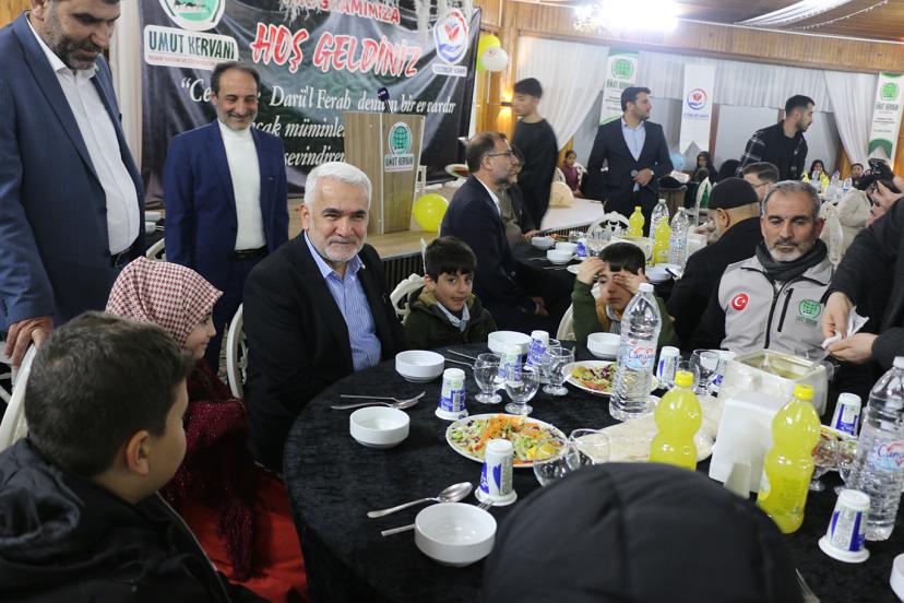 Doğan, "Bizler inanıyoruz ki toplumun merhameti en çok yetimlere gösterdiği ilgiyle ölçülür. Bu iftar sofrası sadece bir yemek sofrası değil, kardeşliğin, paylaşmanın ve dayanışmanın sofrasıdır. Peygamber Efendimiz Hazreti Muhammed (sallallahu aleyhi vesellem), yetimi koruyup gözeten kimse ile cennette yan yana olacağını müjdelemiştir." dedi.