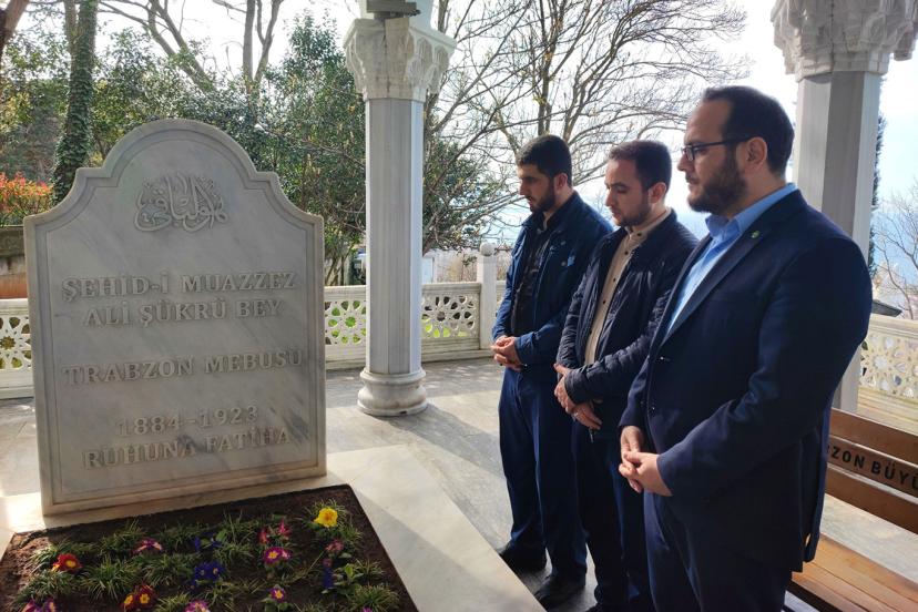 HÜDA PAR Trabzon İl Başkanı Hakan Özbay ve parti teşkilatı, Trabzon Mebusu Ali Şükrü Bey'in şehadetinin 103'üncü yıl dönümü münasebetiyle Şehid'in kabrini ziyaret etti.