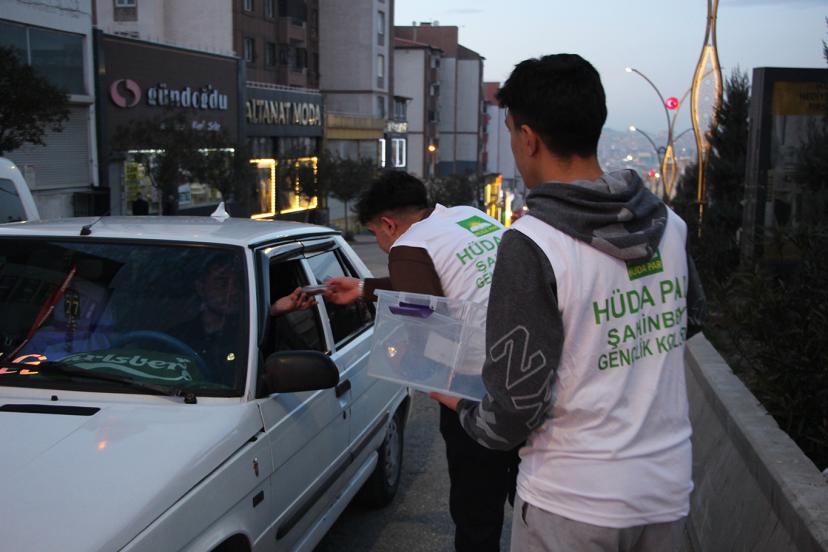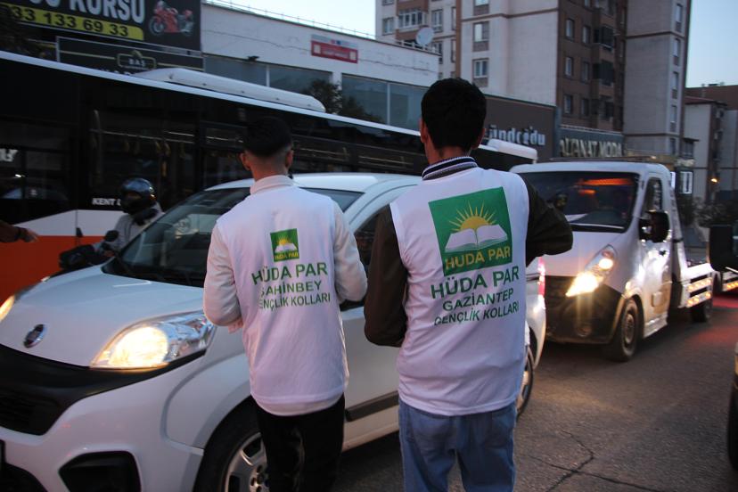 HÜDA PAR Gaziantep Gençlik Kolları, iftara dakikalar kala trafikte bekleyen sürücü ve yolcuları unutmadı. Gençler, şehirdeki yoğun kavşaklarda hurma ve su dağıtarak Ramazanın paylaşma ve dayanışma ruhunu yaşattı.