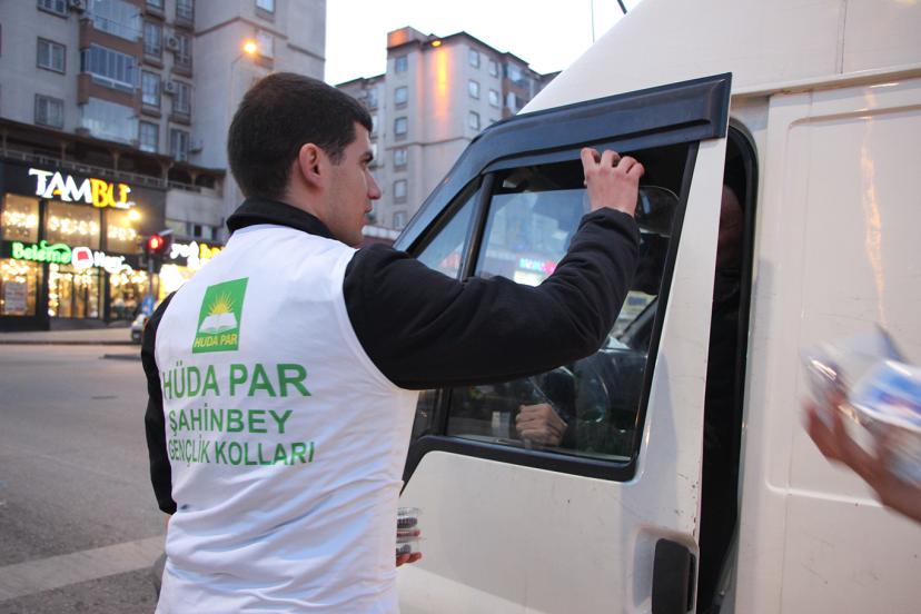 HÜDA PAR Gaziantep Gençlik Kolları üyeleri, iftar saatine dakikalar kala trafikte kalan vatandaşları yalnız bırakmadı.