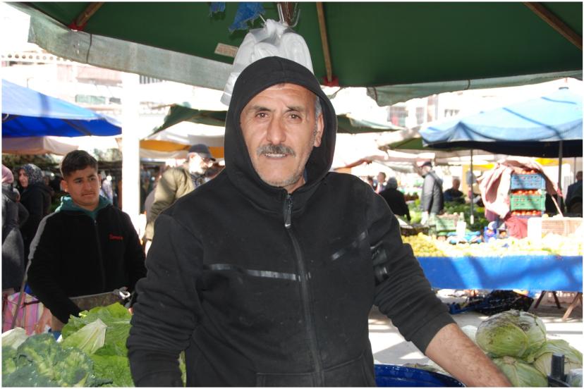 Pazar yerinde yaşanan olumsuz koşullara dikkat çeken Sinan Çelik, “Yazın sera gibi içeride yanıyoruz, kışın yağmuru, çamuru çekiyoruz. Yağmur yağdığı vakit pazarı su basıyor. Kapalı pazar olmasına rağmen pazarı su basıyor.” ifadelerini kullandı.