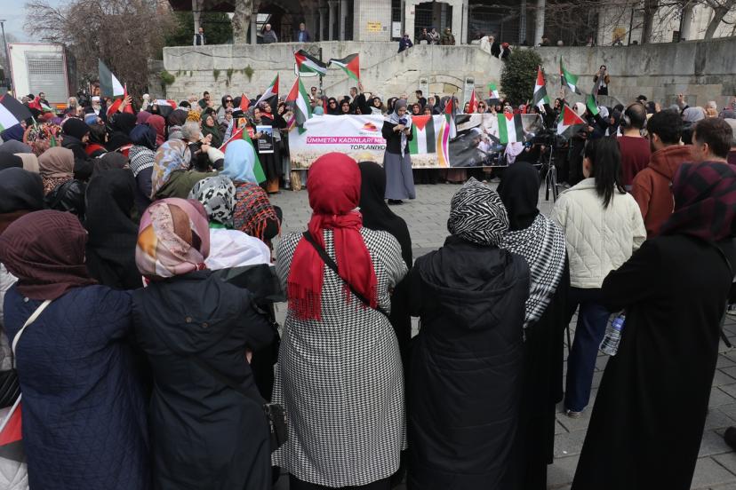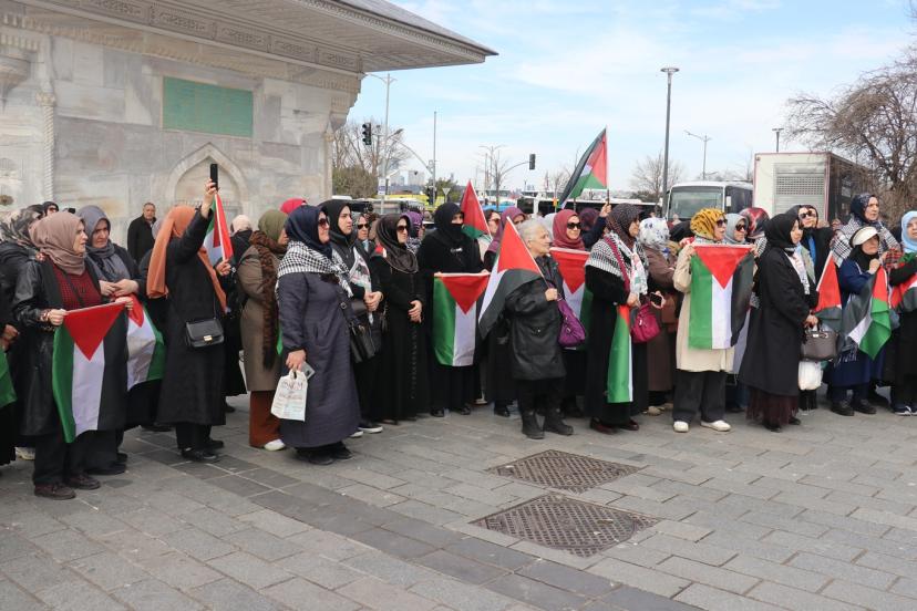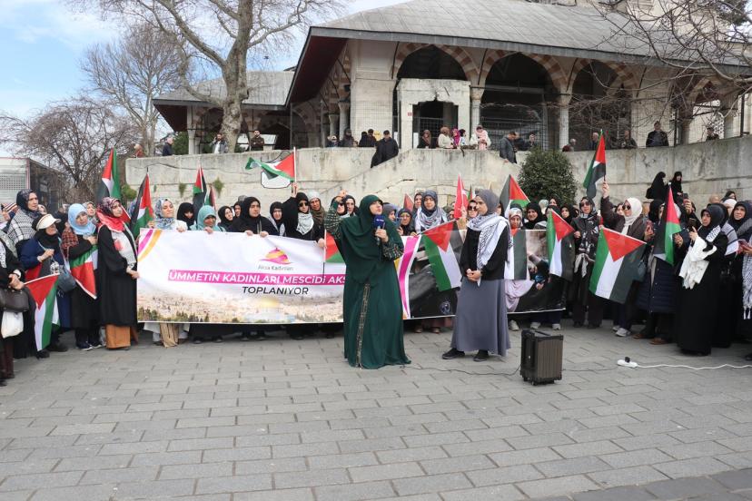 Aksa Kadınları Derneği tarafından cuma namazı sonrasında Üsküdar Mihrimah Sultan Camii önünde gerçekleştirilen eyleme; İşgal zindanlarında 3 yıl boyunca tutuklu kalan Gazzeli Samer Sabiyeh, Filistinli Hukukçu Rima Naimoğlu, çok sayıda sivil toplum kuruluşu temsilcisi ile Filistin duyarlılığı olan halk katıldı.
