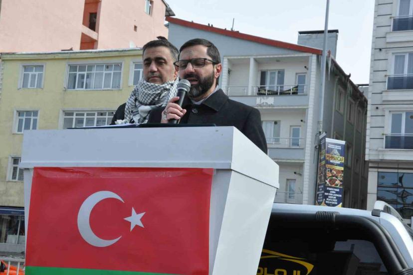 Kars Ehlibeyt Derneği Başkanı Mir Ali Ekber Işık, "Bugün kafirler bir kez daha tüm güçleriyle İslam’ı ve Müslümanları yok etmek için harekete geçmişlerdir. Bu savaş İslam ve küfrün savaşıdır. Neden? Bunu anlayabilmemiz için savaşın taraflarına iyice bakmamız gereklidir. Bir tarafta Allah’a inanan kıble ehli olan anayasası Kur’an olan İran İslam Cumhuriyeti, diğer tarafta yüzlerce yıldır İslam dini geldiği günden beri Müslümanlarla savaşan, İslam’ı baş düşmanı olarak gören Yahudi İsrail ve onun emir eri olan baş şeytan Amerika ve yandaşları vardır. Günümüz dünyasında küfrün ve şirkin temsilcisi olan baş şeytan Amerika demokrasi ve özgürlük götürme hanesiyle gittiği her yeri harabeye çevirmiş ve oraları kendine köle yapmıştır. Irak, Suriye, Afganistan, Yemen, Filistin, Libya, Mısır ve diğer ülkelerin durumları ortadadır. 40 yıldır Filistin’i ve Kudüs’ü işgal altında tutan bu zihniyet, oralarda yaptığı katliam ve zulümleri, yüzlerce yıldır sınırlarımızın değişmediği, en yakın komşumuz İran İslam Cumhuriyeti’ne taşımıştır. Yaklaşık 40 yıldır İran İslam Cumhuriyeti bu vahşi Siyonist saldırgan hayvanı ininde tutmak için uğraşıyordu. Onun için direniş cephesini destekledi. Ama maalesef bu Siyonist yamyamlar, inlerinden çıkarak etraflarına saldırmaya başladılar. Hal böyleyken, siz susun, sesinizi çıkarmayın. Sıra size de gelecek diyerek utanmadan bir de Türkiye Cumhuriyeti gibi köklü bir devlete meydan okumaktadırlar. Böyle bir zamanda biz Müslümanların en temel görevi dinimize ve dindaşlarımıza yapılan bu zulme ve vatanımıza karşı yapılan bu tehdide sessiz kalmamaktır" dedi.