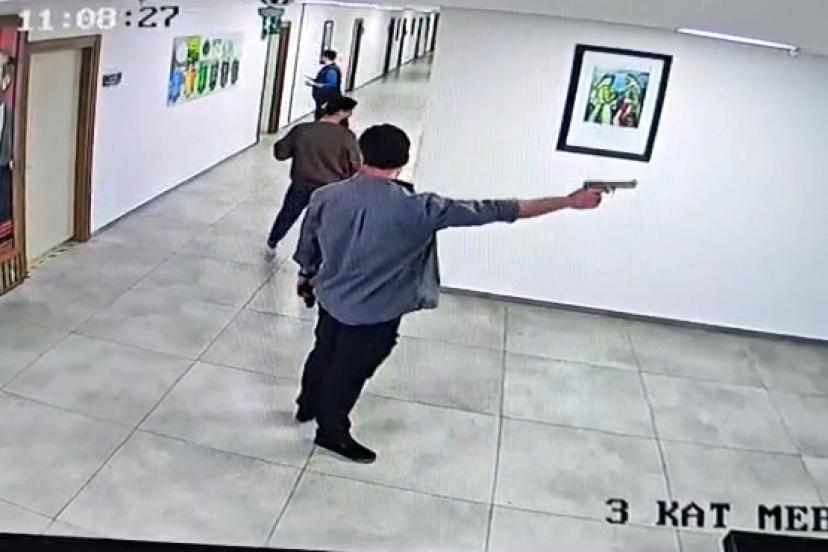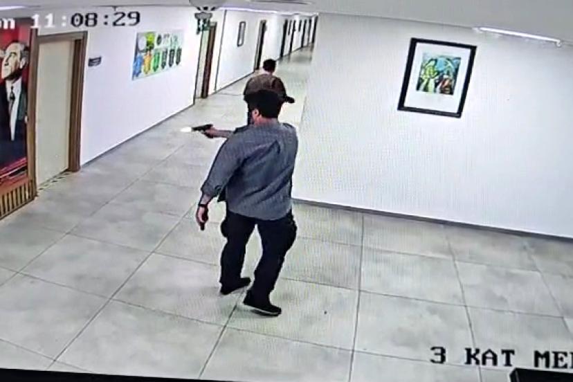 Diğer yandan M.Y.''nin kaymakamlık binası içinde silahla ateş ettiği anların görüntüsü ortaya çıktı. Görüntülerde iki elinde iki tabanca olan M.Y.'nin, koridorda yürüdüğü, burudaki kişileri dışarı çıkmaları için uyardığı, ardından elinde bulunan silahla birkaç kez ateş açtığı yer aldı.