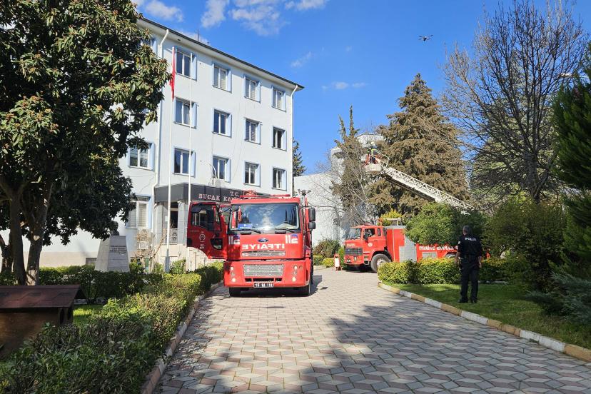 Bucak Belediyesi itfaiye ekiplerinin katılımıyla düzenlenen tatbikatta olası bir afet durumunda personelin tahliyesi ve mahsur kalanların kurtarılması senaryosu uygulandı. Kaymakamlık binasında sirenlerin çalmasıyla başlayan tatbikatta bina personeli hızla tahliye edilerek güvenli alanlara yönlendirildi. Kısa sürede olay yerine ulaşan Bucak Belediyesi itfaiye ekipleri, özel teçhizatlarıyla yangına müdahale hazırlıklarını gerçekleştirdi. Binanın üçüncü katında mahsur kalan çalışan itfaiye merdiveniyle kurtarılarak, güvenli şekilde indirildi.