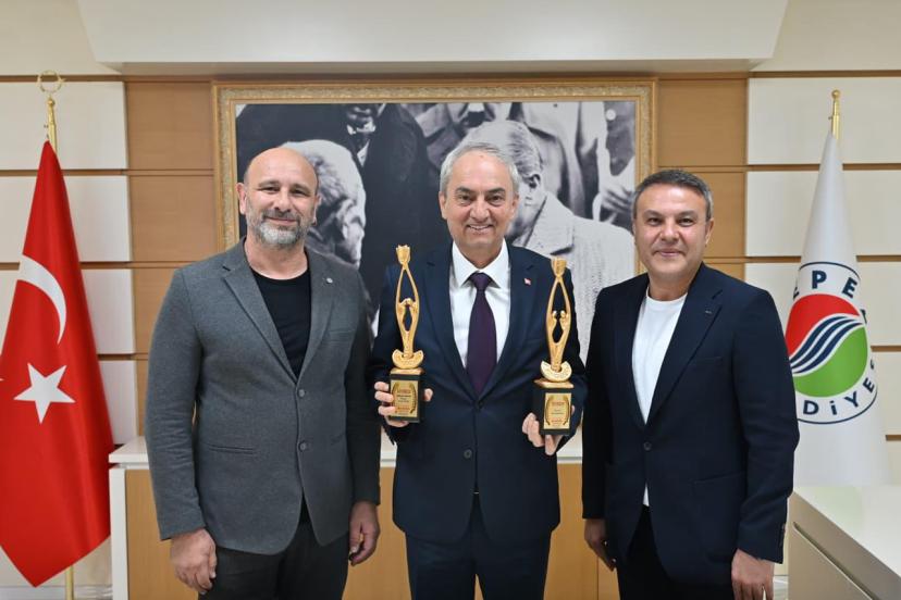 Ziyaret sırasında Kepez Kent Tiyatrosu Genel Sanat Yönetmeni Gökhan Avkıran ve Sanat Akademisi Çocuk ve Gençlik Senfoni Orkestrası Şefi Engin Beslek, ödülleri Kepez Belediye Başkanı Mesut Kocagöz'e takdim etti.