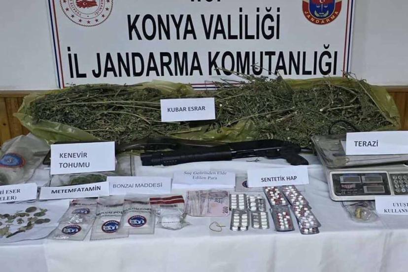 Konya İl Jandarma Komutanlığı ekipleri, mart ayında düzenlenen operasyonlarda 3 kilogram esrar, sentetik ecza hapları, bonzai ve metamfetamin ele geçirdi, 12 şüpheli tutuklandı.