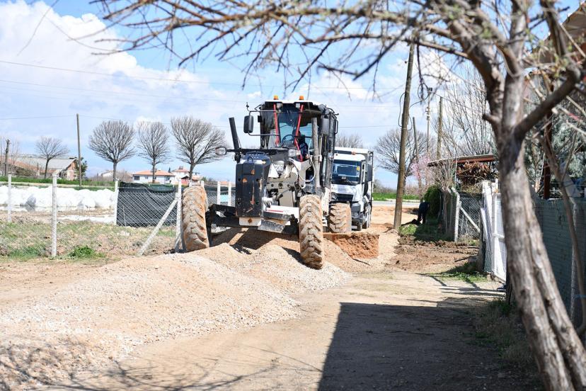 Fen İşleri Müdürlüğü ekipleri Dilek Mahallesi’nde malzeme serim çalışmalarını yoğun sürdürüyor.