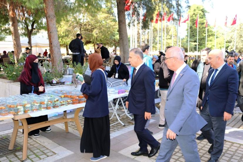 Üniversite yerleşkesinde kurulan stantlarda, öğrencilerin hazırladığı çeşitli yiyecekler ve el emeği ürünler satışa sunuldu.