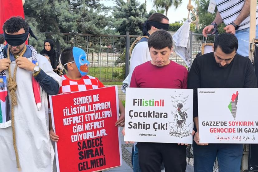 “Zulme rıza zulümdür”, “Filistin halkı yalnız değildir” ve “İnsanlık onuru işgali yenecek” sloganlarıyla verilen mesajlarda, küresel ölçekte adalet çağrısı yapıldı.