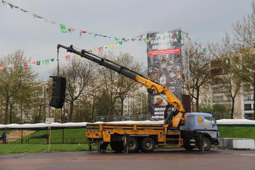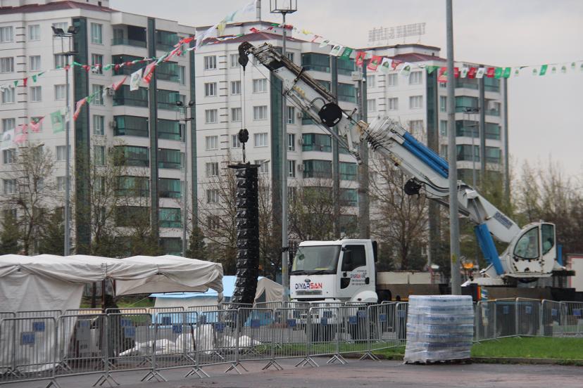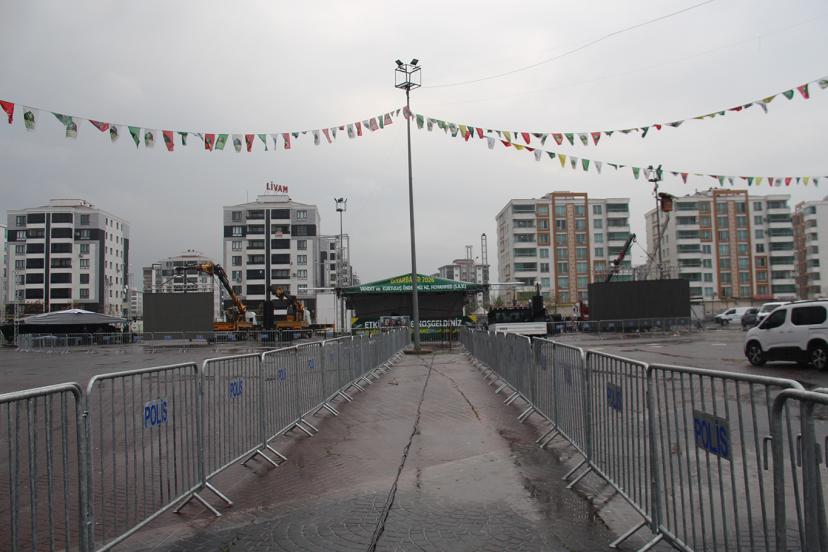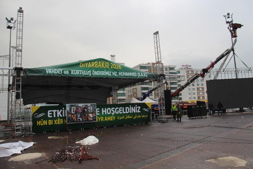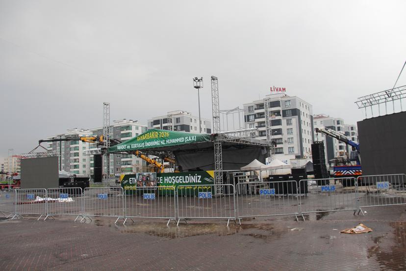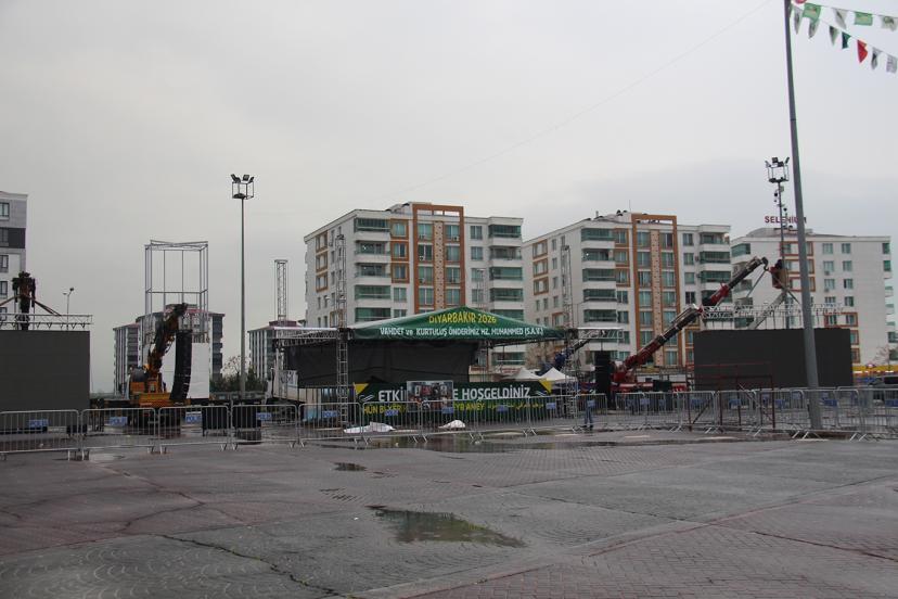 Yarın gerçekleştirilecek Mevlid-i Nebi programı öncesinde Diyarbakır'daki Nevruz Park Alanı'nda hazırlıklar büyük ölçüde tamamlanarak, alan hazır hale getirildi.
