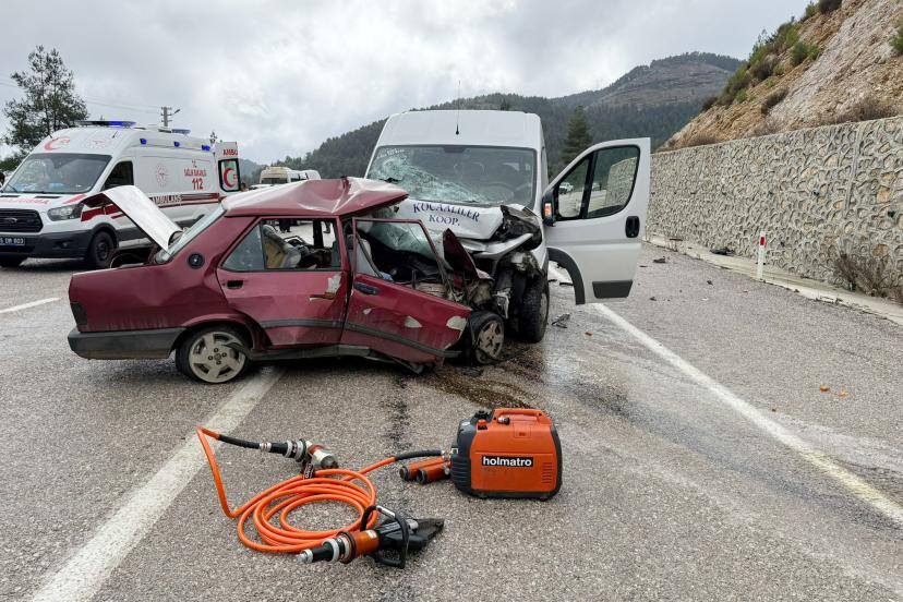 Minibüsle çarpışan otomobilin sürücüsü ve eşi öldü