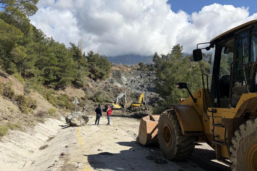 Muğla'da toprak kayması; yol ulaşıma kapatıldı