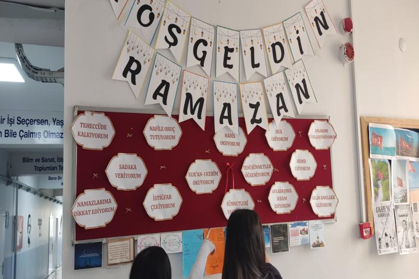 Milli Eğitim Bakanlığı tarafından hayata geçirilen "Maarifin Kalbinde Ramazan" etkinlikleri kapsamında okullarda Ramazan temalı panolar hazırlanırken, öğrenciler ayın anlam ve önemine yönelik çeşitli programlar düzenliyor.
