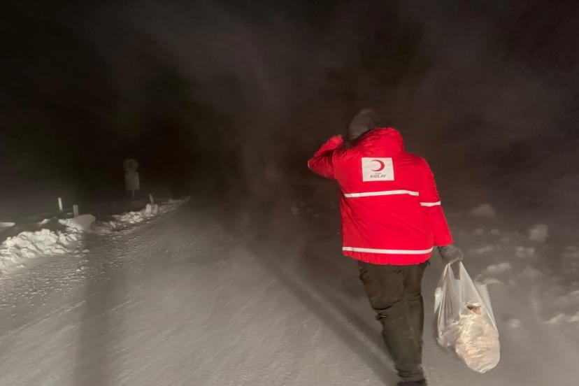 Olumsuz hava koşullarından dolayı yolda kalan ağır tonajlı araçların şoförleri için harekete geçen Kızılay Doğubayazıt Şubesi ekipleri bölgeye giderek yolda kalan sürücülere kumanya desteğinde bulundu.
