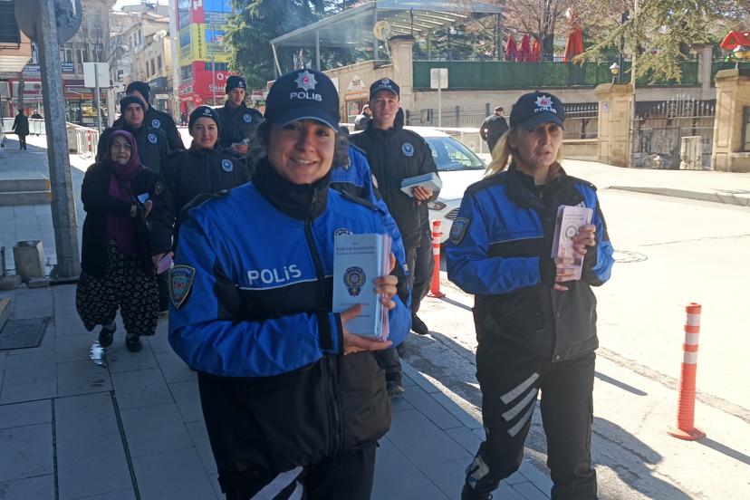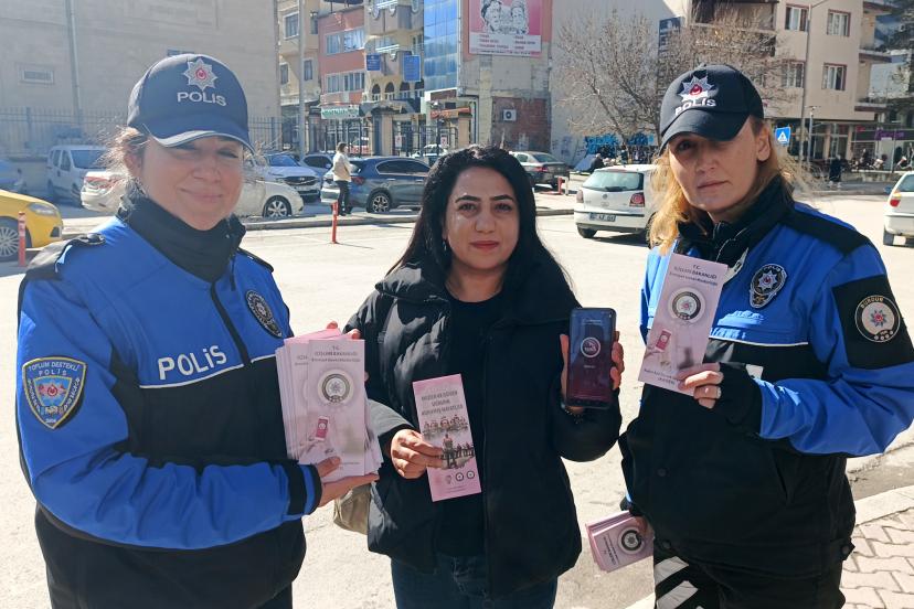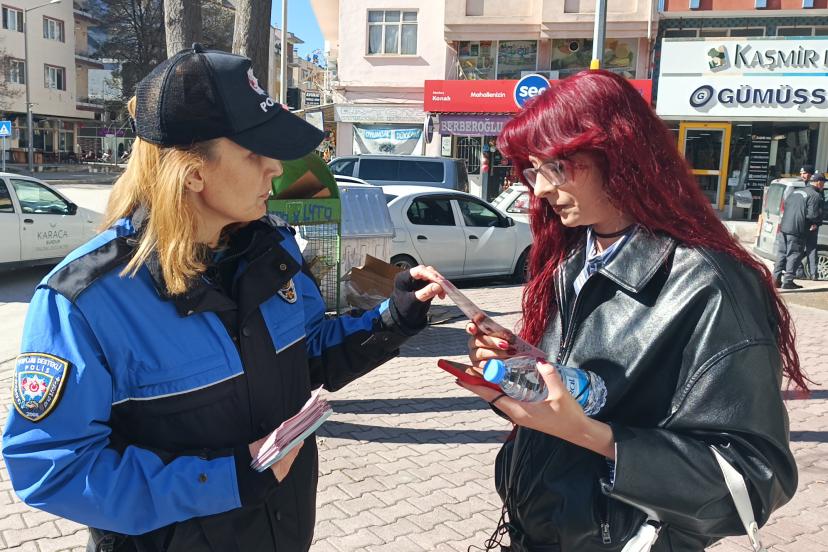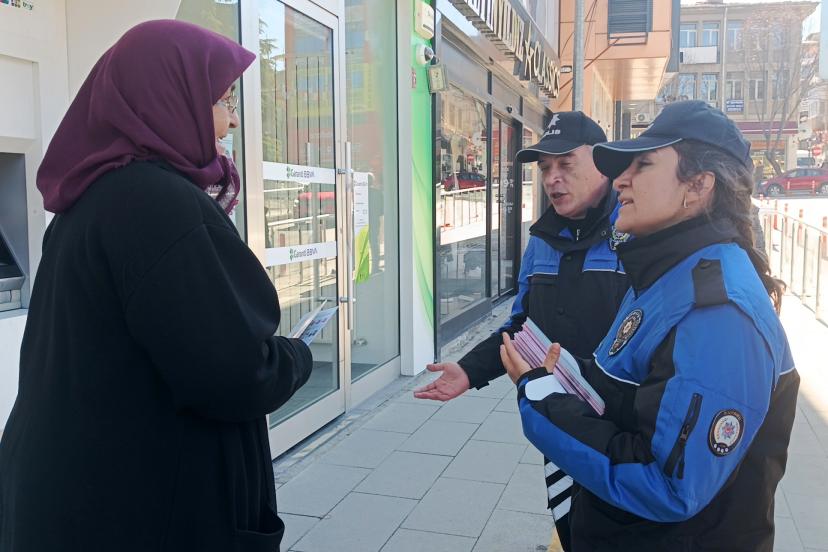 BURDUR'da polis, dolandırıcılık olaylarına karşı uyarı ve Kadın Destek Uygulaması (KADES) hakkında broşür dağıtarak bilgilendirme yaptı.