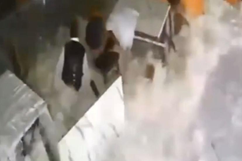Restorana vuran dev dalganın çalışanı sürüklendiği anlar kamerada