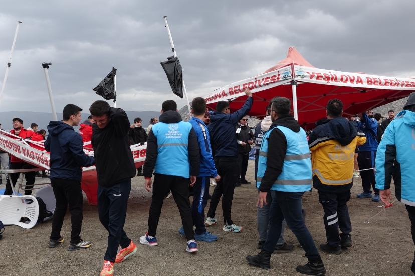 Öte yandan, yarışma sırasında bitiş çizgisine yakın bölgedeki 2 gölgelik ile demir bariyerler ani esen rüzgar nedeniyle devrildi. Yarışı bitiren sporcuların dinlenme alanı olarak hazırlanan bölgede devrilen gölgeliğin demirleri, bir basın mensubunun ayağına düştü, bir izleyicinin de sırtına çarptı. Alanda görevli sağlık ekiplerince gölgeliğin çarptığı 2 kişi kontrol edildi.