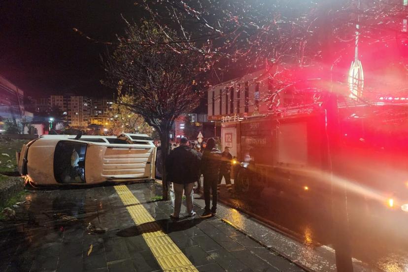 Kontrolden çıkan araç kaldırıma çıkarak yol kenarındaki ağaca çarptıktan sonra yan yattı. Kazada araçta bulunan 3 kişi hafif şekilde yaralandı.