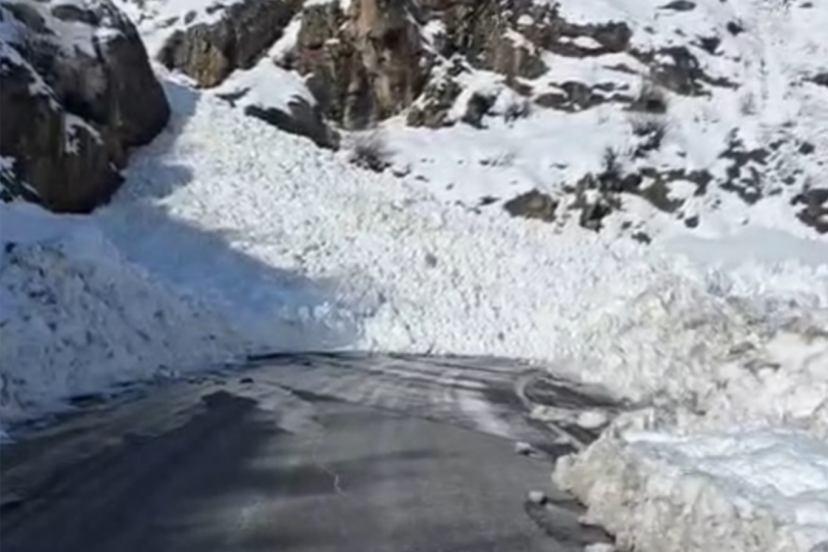 Bölgede etkili olan yoğun kar yağışı ve tipi sonrası dağlık alandan kopan kar kütlesi karayoluna sürüklendi.
