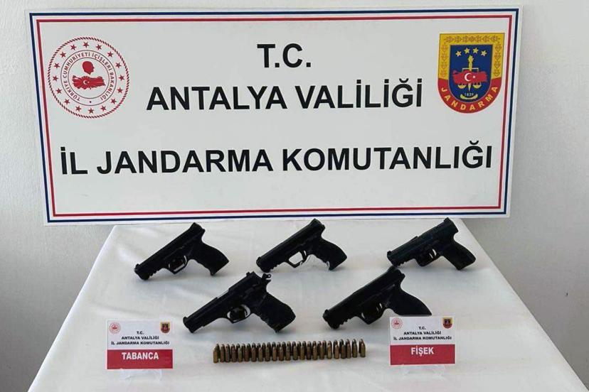 ANTALYA’nın Gazipaşa ilçesinde jandarma ekiplerince yapılan şok yol kontrolünde 5 ruhsatsız tabanca ve 93 fişek ele geçirildi. Olayla ilgili 5 şüpheli hakkında adli işlem başlatıldı.