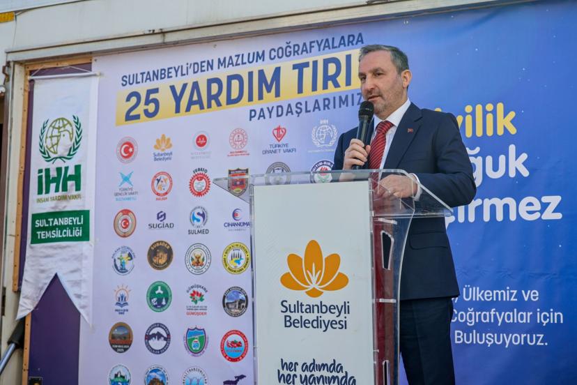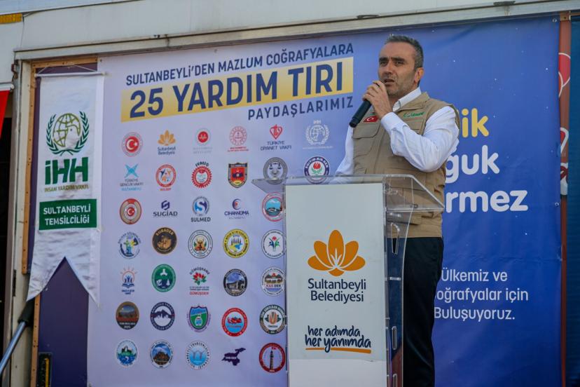 Şimdiye kadar Gazze, Suriye ve Sudan'a 20 tır insani yardım malzemesi gönderen Sultanbeyli'deki sivil toplum kuruluşları, düzenlenen programda 5 tır yardım malzemesi daha yola çıkardı.