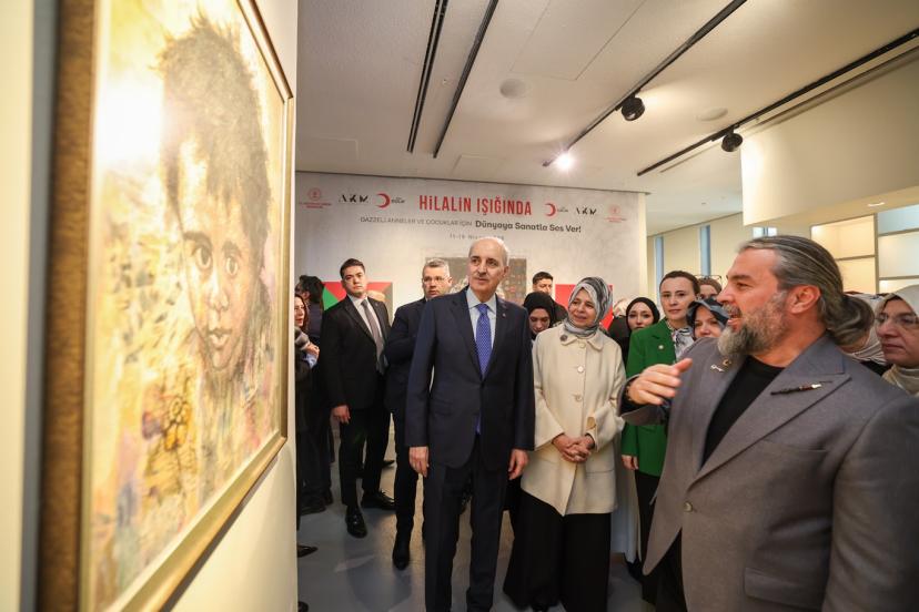 Gazze'deki kadın ve çocuklara yönelik yardım çalışmalarına katkı sağlamak amacıyla, Kültür ve Turizm Bakanlığı himayesinde, Kızılay iş birliğiyle Atatürk Kültür Merkezi'nde (AKM) düzenlenen, "Gazzeli Anne ve Çocuklar İçin Dünyaya Ses Ver" temalı "Hilal'in Işığında Karma Sanat Sergisi" programında konuşan Kurtulmuş, sergiye katılmaktan büyük memnuniyet duyduğunu, serginin daha önce Türkiye Büyük Millet Meclisi Şeref Salonu'nda gerçekleştirildiğini ve bugün ise AKM'de açtıklarını söyledi.