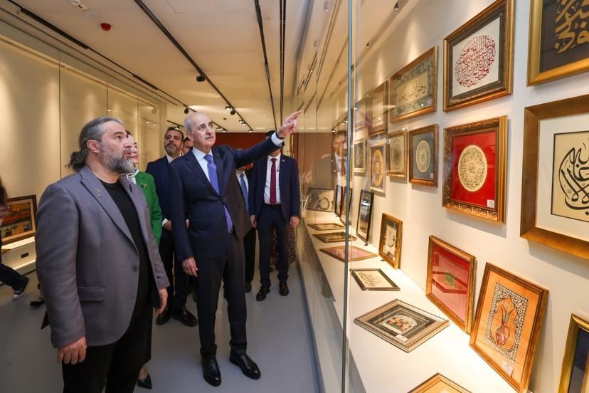 TBMM Başkanı Kurtulmuş, daha sonra sergiyi gezerek, eserlerin sahiplerinden bilgiler aldı.