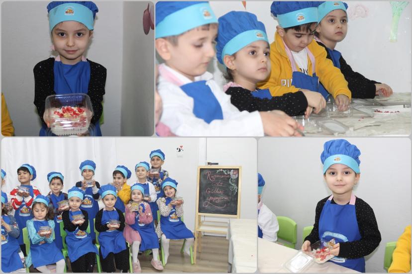 Tekne orucu tutan minikler aileleri için güllaç hazırladı