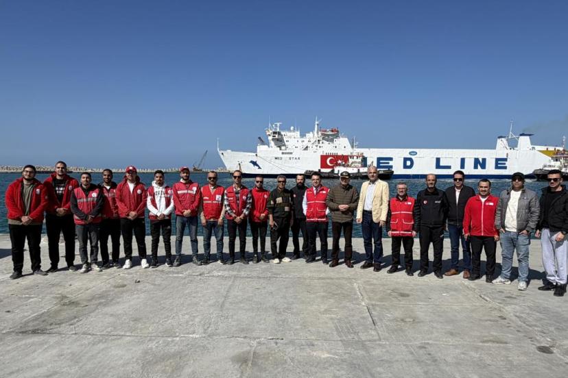 El Ariş Limanı'nda karşılanan insani yardım malzemeleri, Mısır Kızılayı ile koordinasyon halinde Refah Sınır Kapısı üzerinden Gazze'ye sevk edilecek.