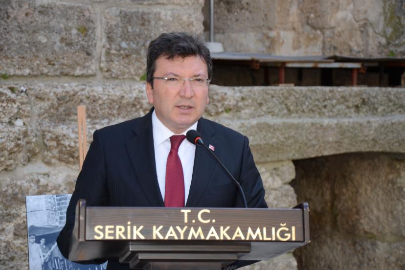 Kaymakam Cemal Şahin, "Büyük Önder Gazi Mustafa Kemal Atatürk'ün yurt gezileri kapsamında 9 Mart 1930 tarihinde ilçemize teşriflerinin 96 yıl dönümünü anmak üzere bir araya gelmiş bulunuyoruz. Tarihi ve kültürel zenginlikleriyle dünyaca tanınan ilçemizin simgelerinden biri olan Aspendos Antik Tiyatrosu'nda bu anlamlı günü idrak etmekten büyük bir gurur duyuyoruz. Atatürk'ün Serik'e gerçekleştirdiği bu ziyaret o gün ilçemizde büyük bir heyecan uyandırmış, Serik halkı Atasını büyük bir sevgi ve coşkuyla karşılamıştır. Bu ziyaret ilçemizin tarihine gururla taşıdığımız önemli bir hatıra olarak yerini almıştır. Serik, Toros Dağlarının eteklerinde yer alan doğal güzellikleri, köklü tarihi, güçlü tarım potansiyeli ve gelişen turizmiyle ülkemizin önemli ilçelerinden biridir. Bu eşsiz coğrafya için büyük Önder Mustafa Kemal Atatürk'ün ifade ettiği 'Şüphesiz ki Antalya dünyanın en güzel yeridir' sözü bu toprakların kıymetini en güzel şekilde ortaya koymaktadır. Aynı şekilde antik çağ tarihçilerinden Herodot'a atfedilen 'Dünyada masmavi gökyüzünün altındaki en güzel yeryüzü parçası burasıdır' sözü de içinde bulunduğumuz bu eşsiz coğrafyanın tarih boyunca hayranlık uyandırdığını göstermektedir. Gazi Mustafa Kemal Atatürk'ün Aspendos Tiyatrosu için verdiği talimatla bu mirasa verdiği önemin en güzel göstergelerinden biridir. 'Bu tiyatroyu restore ediniz ama kapısına kilit vurmayınız. Burada temsiller veriniz, güreşler düzenleyiniz' diyerek bu eşsiz seslerin yaşayan bir kültür mekanı olmasını istemiştir. Yörük kültürü de bu coğrafyanın ruhunu ve dayanışmasını yansıtan en önemli değerlerden biridir. Atatürk güçlü sözleri bu gerçeği en güzel şekilde ifade etmektedir. Yine 'Toros Dağlarına bakınız eğer burada bir tek Yörük çadırını görürseniz ve o çadırda bir duman tutuyorsa bilin ki bu dünyada hiçbir güç ve kuvvet bizi yenemez.' Geçmişinden güç alan, kültürüne sahip çıkan ve birlik içinde yürüyenlerin yarınları güçlü olacaktır" dedi.